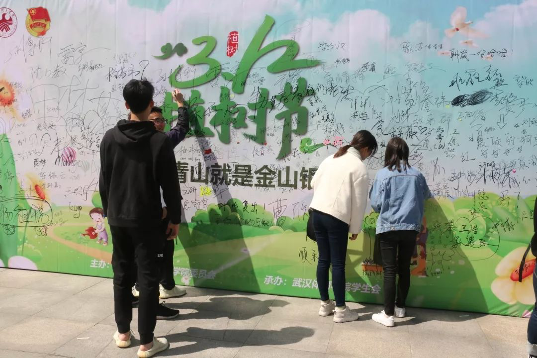 3月12日中午,由校团委主办、校学生会承办的主题为“绿水青山就是金山银山”的植树节签名宣传活动于奥星苑广场举行。