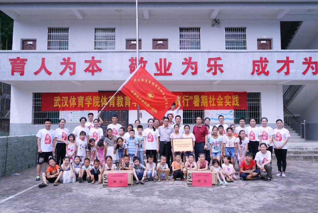 2017年7月7日至13日,武汉体育学院第五批“欢乐体育行”大学生社会实践一分队再次来到湖北咸宁通山县船埠小学,本支队伍由体育教育学院朱妍珏带队、张奕芸、王珂两名指导教师以及十二名学生骨干组成,与当地的留守儿童们展开了丰富多彩的体育教学活动。此次社会实践中,队员们以“四个计划”为目标,通过“五个一工程”,带领孩子们了解体育,参与体育,感受体育,享受体育。“四个计划”即思想道德培育计划、体育强身健体计划、心理健康呵护计划、自信心加强计划。这是社会实践队贯穿于整个志愿服务的目标。“五个一工程”,即学习一项体育技能,组织一次体育知识竞赛,再续一次牵手“一对一”帮扶,组织一次趣味运动会,开展一次体育展示,将快乐进行到底,建立孩子们对体育的浓厚兴趣,收获体育中的乐趣与自信。本次社会实践活动受到当地电视台、湖北日报网、人民网等多家媒体的关注和报道,吸引了更多有爱心的人关注留守儿童、参与支教活动,用绵薄之力帮助大山深处的孩子。