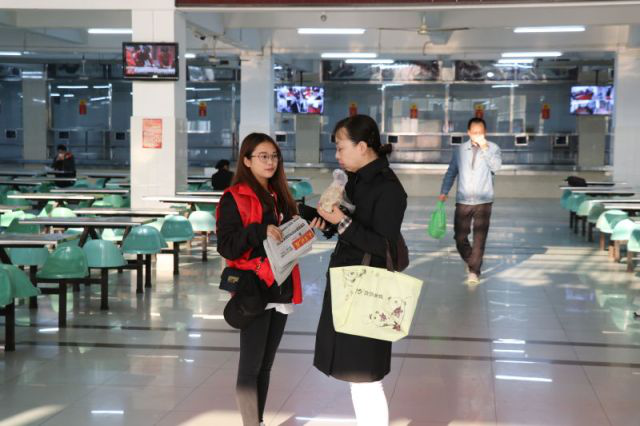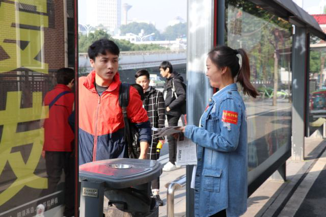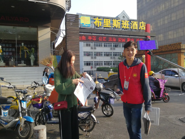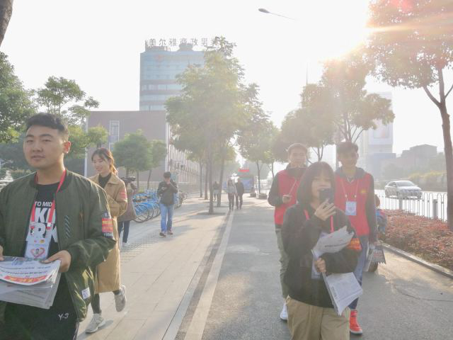早上七点半,聚集在奥星苑广场上的志愿者们已经整装待发,校团委青协的志愿者们和各个院系的志愿者同学在奥星苑门口等待领取报纸等物资进行活动。