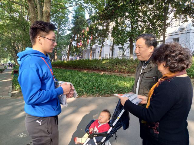 为了更好的贯彻“奉献、友爱、互助、进步”的志愿者精神。10月21日,武汉体育学院青年志愿者协会在武汉体育学院奥星苑广场上开展了新成员加入后的第一次活动——爱心卖报。