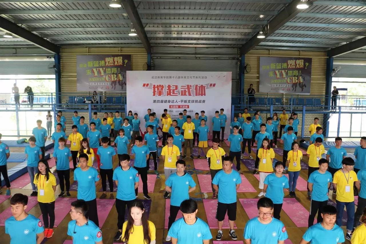 4月27日中午,为进一步贯彻落实团中央“走下网络、走出宿舍、走向操场”大学生主题群众性课外体育锻炼活动要求,开展好武汉体育学院第十八届体育文化艺术节,引导学生乐于学习、注重运动、健康生活。由共青团武汉体育学院委员会主办,武汉体育学院学生社团联合会承办的第四届健身达人“撑起武体”平板支撑挑战赛在我校斯篮搏球馆举行。