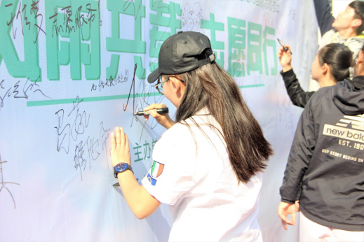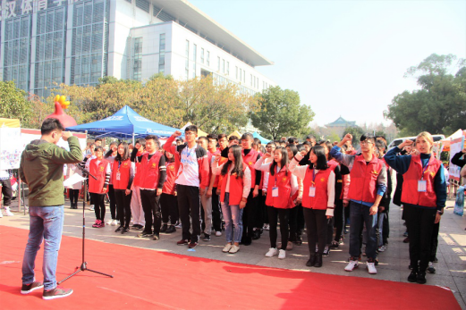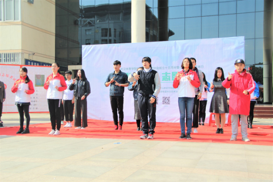 活动举行期间,校团委老师宋菲菲给全校青年志愿者们送上节日祝福,校青协主席赵继升进行动员活动,和全体青年志愿者协会的成员进行宣誓。随后,武术社、街舞社以及手语社都带来了具有这些社团特色的活动为本次活动助兴,将整个活动推向了高潮。在所有节目表演结束后,校青协以及各院青协的志愿者们进行了大合影,并且在喷绘上签名留念。