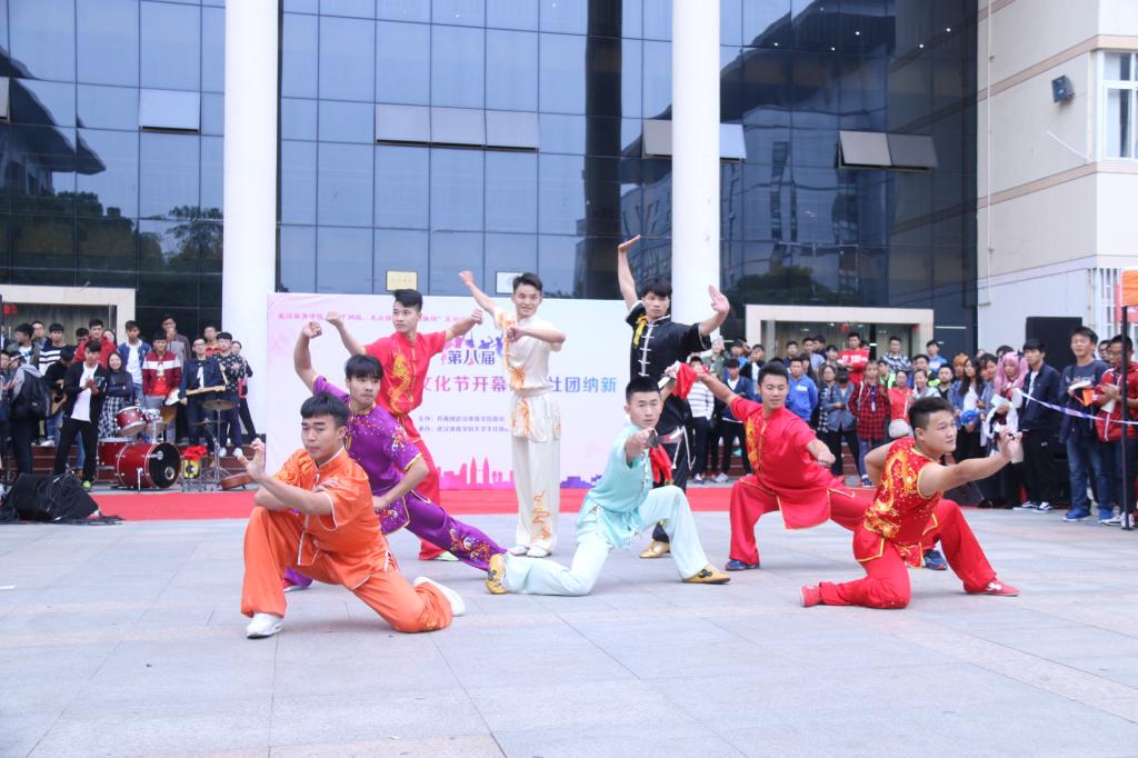 本届社团文化节开幕式由各社团上台轮番表演精彩的节目,花式篮球社酷炫的“指尖上转球”,让现场的“迷妹”看呆了眼;手语协会用手语表演一曲,让观众们静静地感受由心发出的温暖;武艺社上演真功夫,纷纷让围观的人拍手称好;Limit 轮滑社,用花巧的轮滑技术,吸引不少同学们蠢蠢欲动的心;跆拳道社团展示出力量与技巧的碰撞,动漫社带来的日文歌与别样风味的舞蹈,在众多功夫了得之中平添不一样的颜色……除了台上精彩的表演以外,台下依然热闹非凡,各社团协会在各自的摊位前表演特色十足的小节目,吸引了不少学生参与其中。