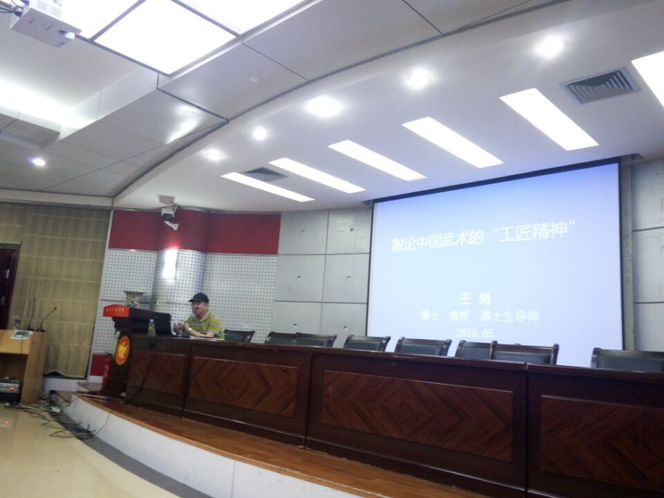 本期“讲武堂”的主讲人为武术学院王岗教授,王岗教授讲座的主题为“召回中国武术的工匠精神”。讲座分为引言、工匠精神定义阐述、中国武术界“工匠精神”缺失的乱象分析、找回中国武术“工匠精神”的路径四部分。