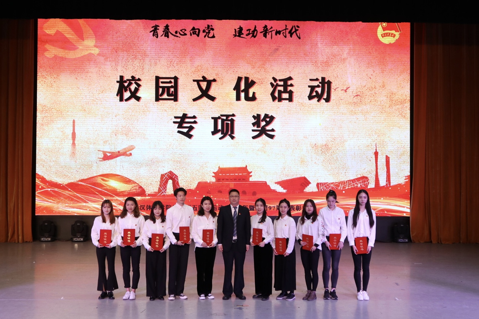 校领导为武汉体育学院2018年度共青团工作先进集体和个人颁奖。